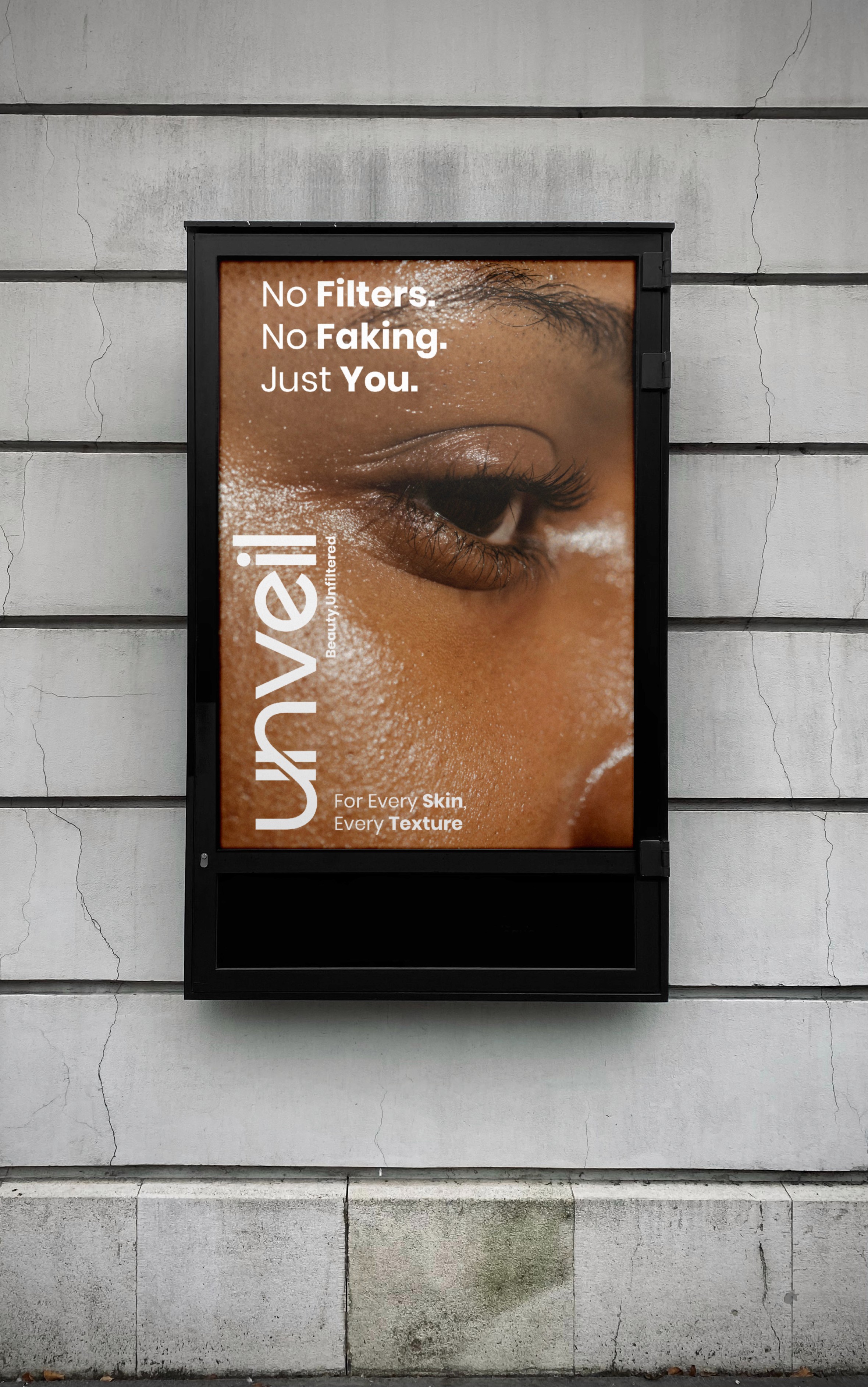 Unveil isn’t about covering up, it’s about celebrating skin in its raw, real, and radiant form. That belief flows through every aspect of the brand identity, from the name and colour palette to the textures, typography, and packaging. Rooted in the idea that beauty lies in being seen, the brand speaks to confidence, authenticity, and self-acceptance.